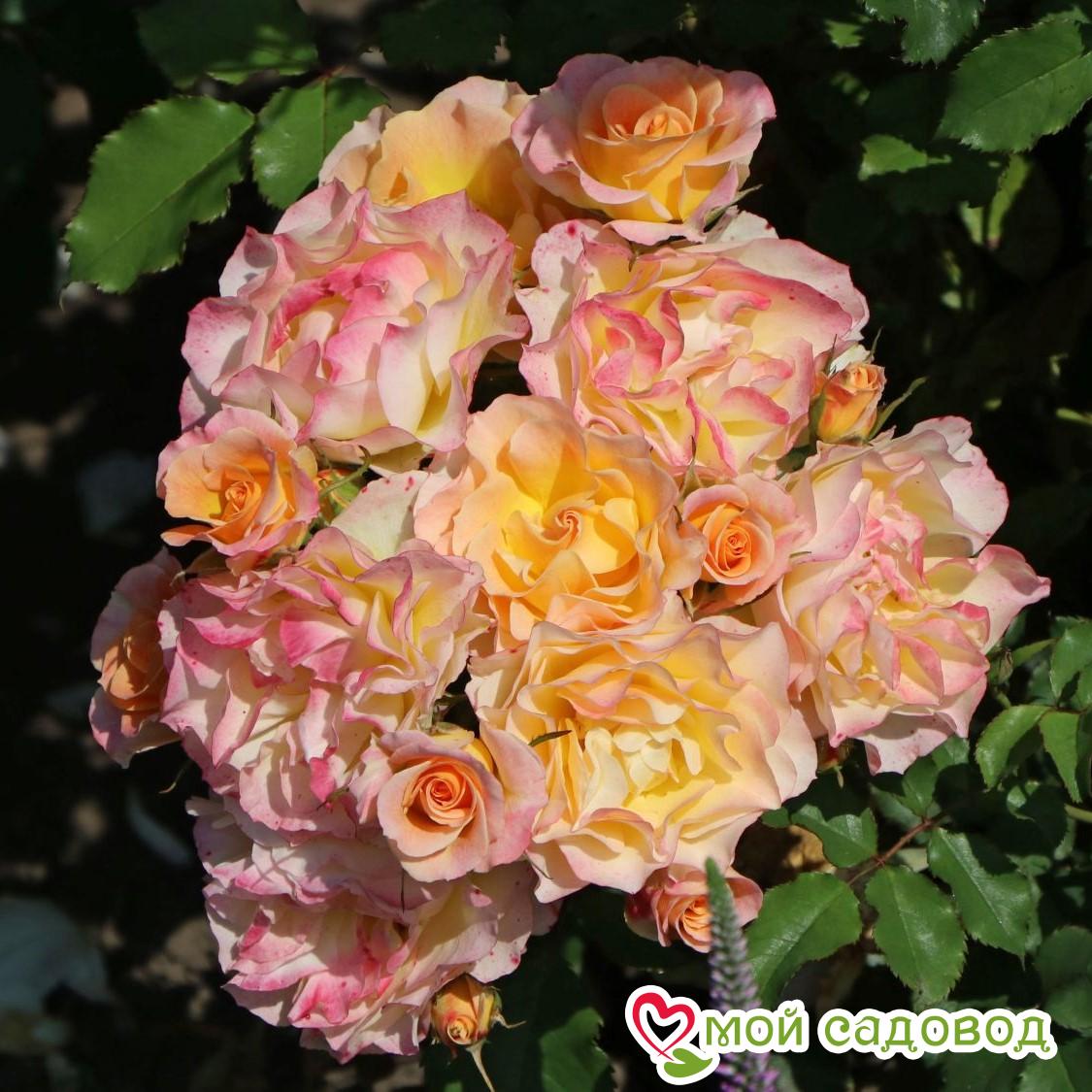 Роза ЛандЛуст Популярный среди садоводов сорт выведен в 2014 году в Германии. Он удостоен нескольких мировых наград: приз зрительских симпатий (Италия, конкурс Монца), первый приз международного жюри (Франция, конкурс роз Лион), звание «Золотая Роза» (Бельгия, конкурс роз Кортрейк) и т. д. Купить эту рассаду стремится практически каждый розовод. Ботаническое описание Высота взрослого саженца варьирует в пределах 1,1 – 1,3 м. Диаметр куста равен 80 см. Бутоны абрикосово-жёлтые, с нежным розовым оттенком. По краям лепестки с малиновой окантовкой. По мере распускания они приобретают тёмно-розовый цвет. Полностью раскрывшийся цветок махровый, диаметром 7 – 9 см, розетковидный, состоящий из 19 – 26 лепестков. Он не источает никакого аромата. Листва кожистая, тёмно-зелёная. Побеги длинные, аркообразные. Применение Как и все шрабы сорт ЛандЛуст хорошо смотрится в любом виде: в сольных посадках, в группе из 3 – 5 кустиков и в цветниках, состоящих преимущественно из почвопокровных роз. Посредством неприхотливого растения можно создавать оригинальные клумбы, закрывать заборы и ограждения, декорировать небольшие уголки сада. Агротехника Уход за шрабом ЛандЛуст практически не отличается от ухода за остальными классами роз. Молодую рассаду нужно вовремя поливать, при необходимости подкармливать и проводить профилактическое опрыскивание листвы. Последний пункт меньше всего требует внимания, поскольку сорт устойчив ко многим грибковым инфекциям. Для поддержания повторяющегося цветения и аккуратной формы саженцы необходимо правильно подстригать. В целом эти розы неприхотливы и довольно выносливы, благодаря чему с их выращиванием справится даже новичок в садоводстве. Весной требуется вовремя убирать сорные травы в приствольных кругах. Дело в том, что после их разрастания затрудняется доступ кислорода к корневой системе. Об этом важно помнить, если хочется получить здоровое растение с высокими декоративными качествами. В период засухи рассаду надо обильно поливать, чтобы она благополучно развивалась и максимально долго цвела. Из-за недостатка влаги кустики будут отставать в росте, а бутоны будут миниатюрными и в малом количестве. Под каждый экземпляр рекомендуется выливать по 1 ведру тёплой воды. При этом жидкость не должна попадать на стебли и листья – это создаст благоприятную среду для развития грибковых болезней. Роза ЛандЛуст не любит жары. Оптимальная температура для её роста и развития – +20 – +22 ˚С. Если столбик термометра поднимается выше +25 ˚С, это вызовет стресс у молодой рассады. В таких условиях нужно следить, чтобы грунт вокруг растений не пересыхал. Для этого прикорневую зону укрывают слоем мульчи. Она сохранит ценную влагу, и защитит корневище от перегревания. Следовательно, все метаболические процессы будут протекать с правильной интенсивностью. Неотъемлемой частью жизненного цикла являются подкормки. Они помогают саженцам окрепнуть, красиво зацвести, благополучно пережить зимние заморозки и противостоять естественным врагам. В первый раз кустики удобряют азотными препаратами. Также в весенний период используют калийно-азотные составы — они стимулируют формирование зелёной массы и бутонов. Вносят подкормки не чаще 2 раз в месяц (исходя из типа грунта). Предзимняя подкормка выполняется за 1,5 месяца до прихода холодов (